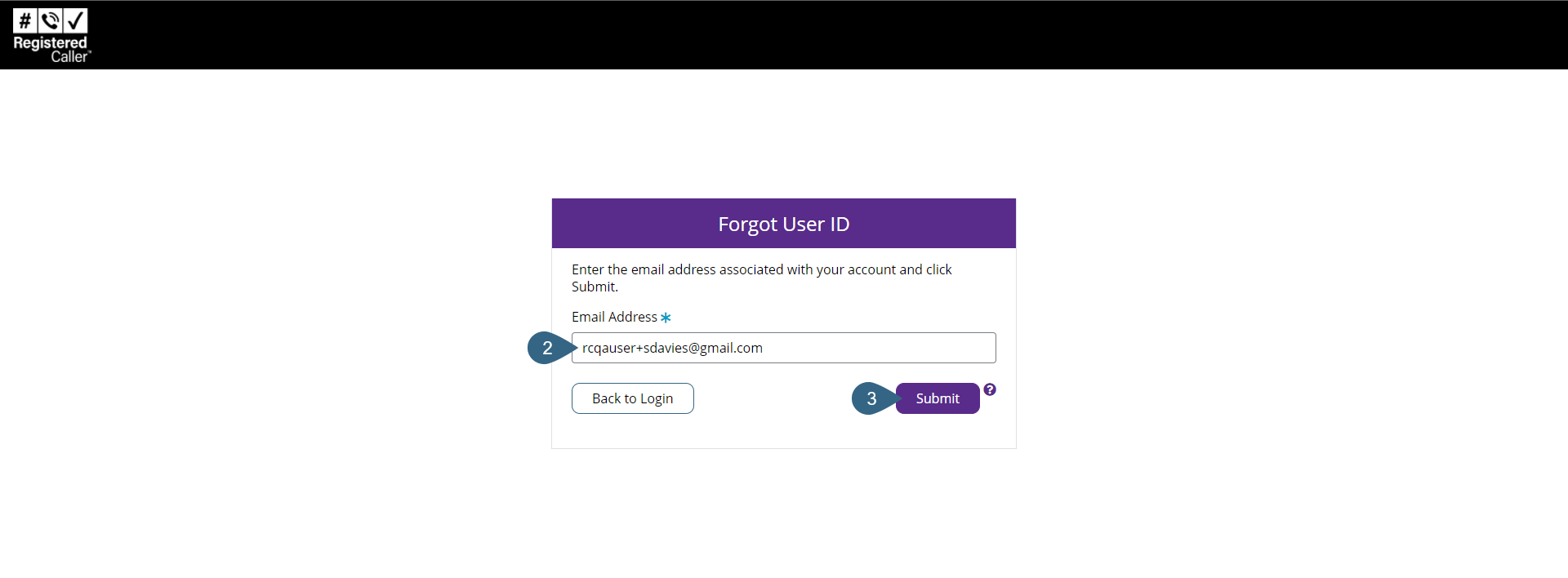 - In the Forgot User ID dialog, enter your email address associated with the forgotten User ID in the Email Address * field.