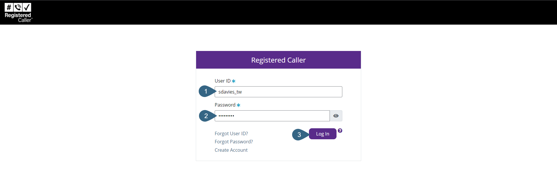 Log into Registered Caller